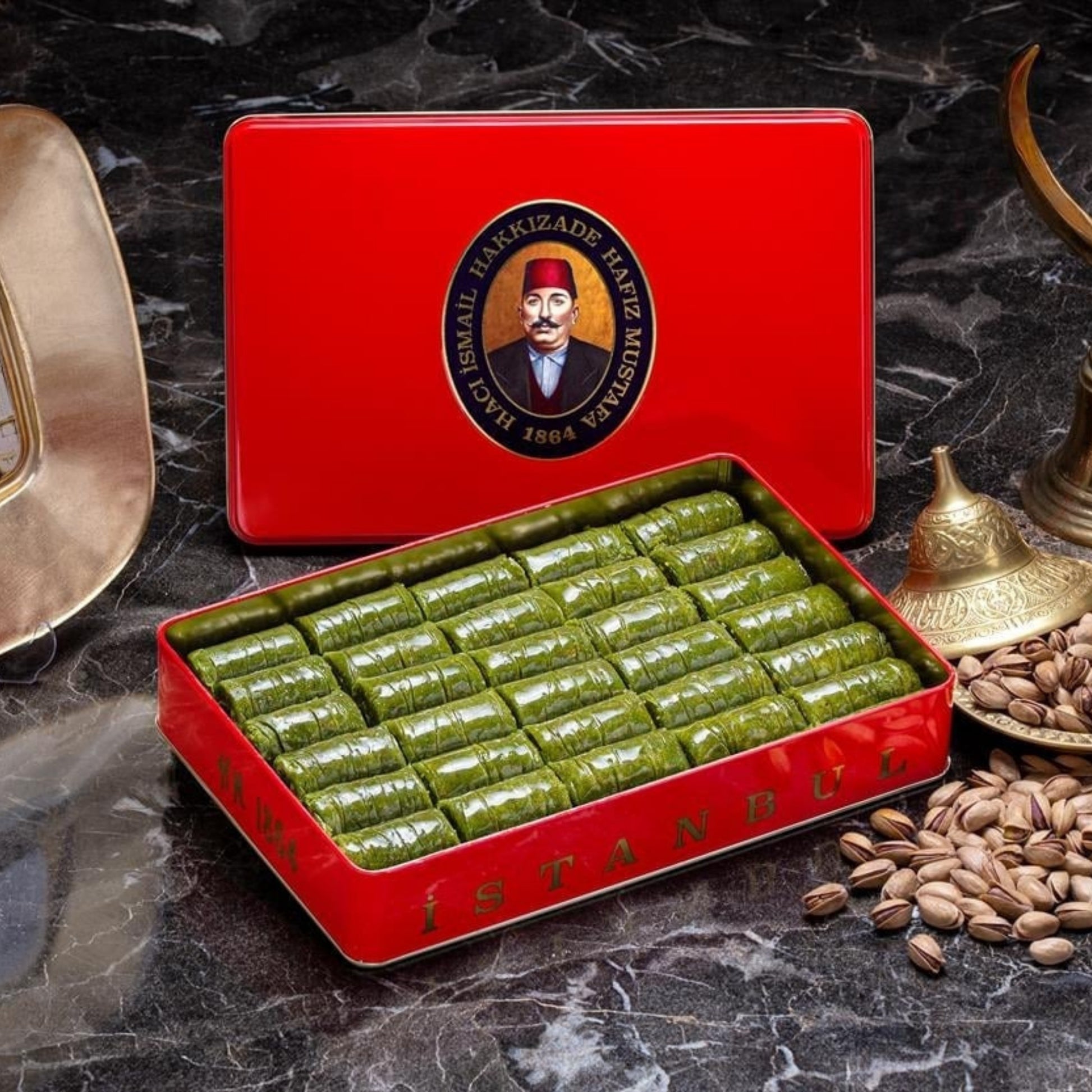Hafiz Mustafa Crunchy Pistachio Baklava Fingers 1.25 kg, Free Shipping and Fast Delivery to your home to live in the world of sweetened pistachio with baklava.