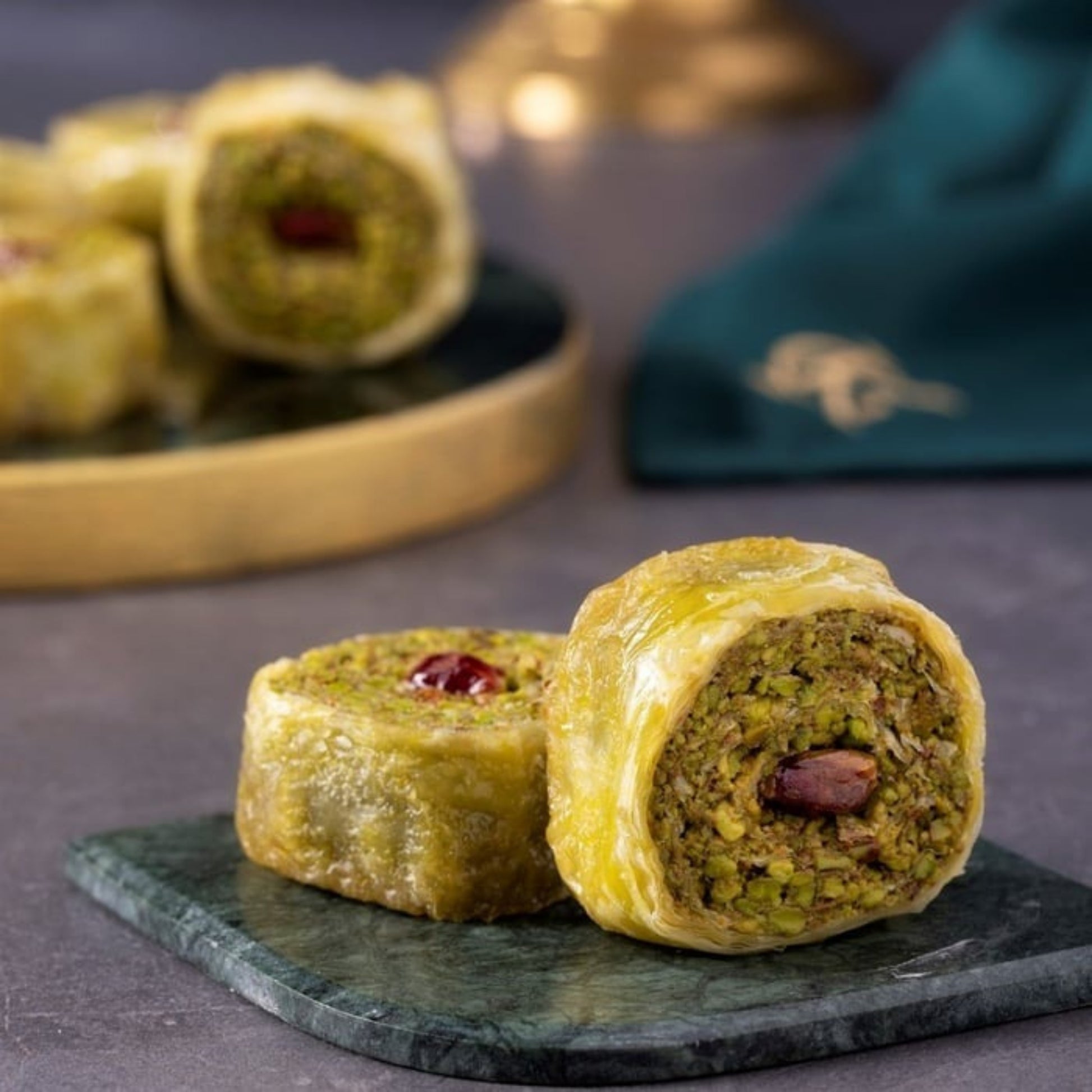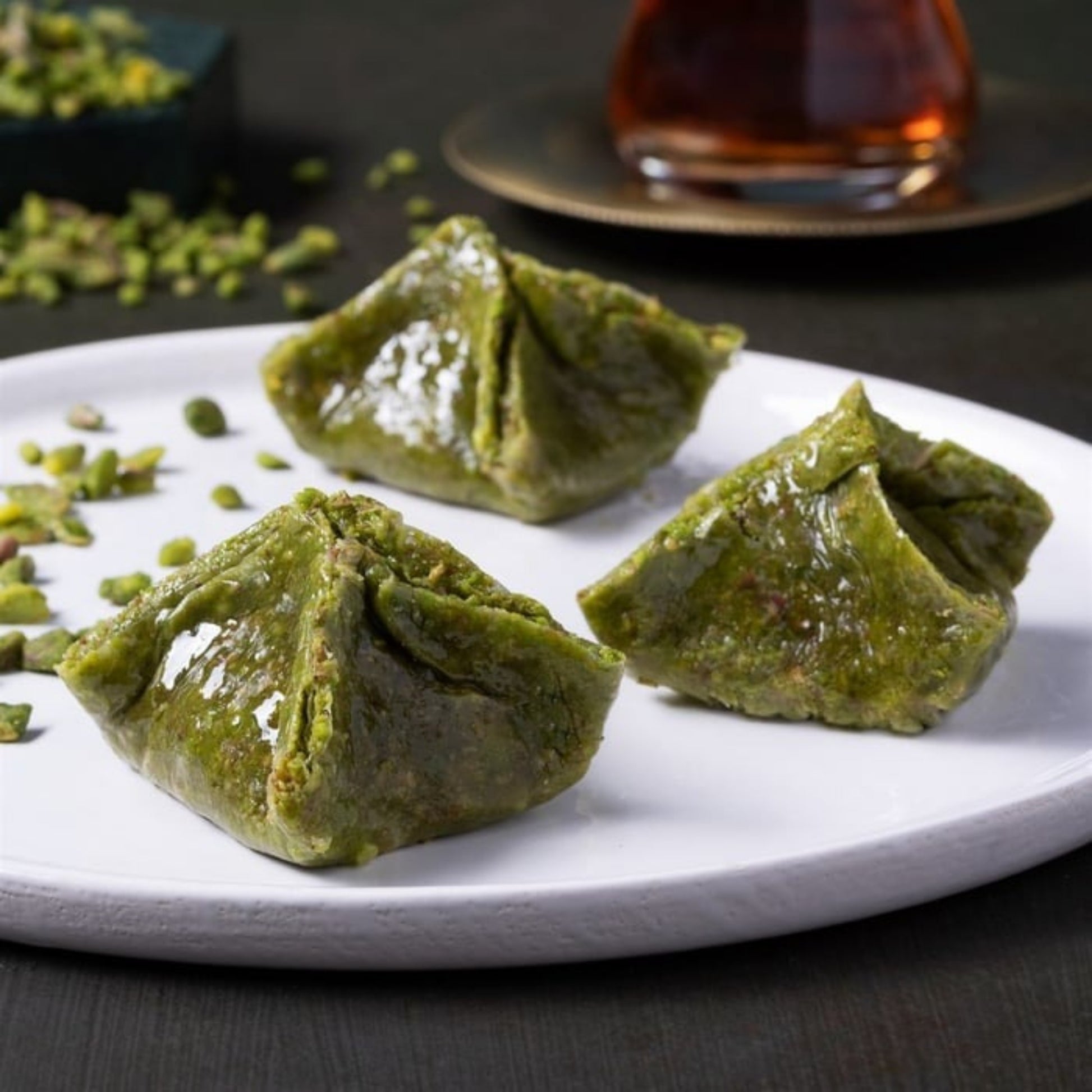 Delicious fresh baklava squares. Distinctive shape and flavor. Plenty of double pistachio filling. Always crunchy and fluffy. Lower sugar content than other baklava. Allergens: Dried pistachio baklava contains gluten and pistachios. May contain small amounts of walnuts and hazelnuts. Ingredients: Dried pistachio baklava contains wheat flour, clarified butter, pistachio kernels, beet sugar, water, wheat starch, eggs, salt. Does not contain glucose syrup. Weight: 900-1100g. Preparation time: 1-3 business days. Shipping time: 2-4 business days.
