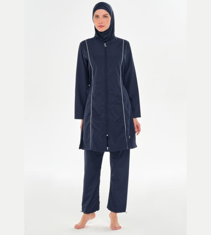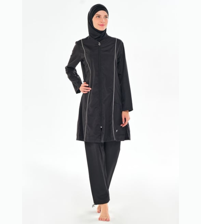 Enjoy a stylish and comfortable look with this practical burkini crafted from high-quality interlock fabric. It features a modest design with long sleeves and a front zipper for easy dressing, along with a quick-drying feature that makes it an ideal choice for the beach or pool.