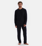 بيجامة نوم رجالية بأزرار وياقة مستديرة باللون الكحلي
