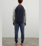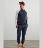 بيجامة نوم رجالية بأكمام طويلة بتصميم راجلان بلون كحلي وأبيض