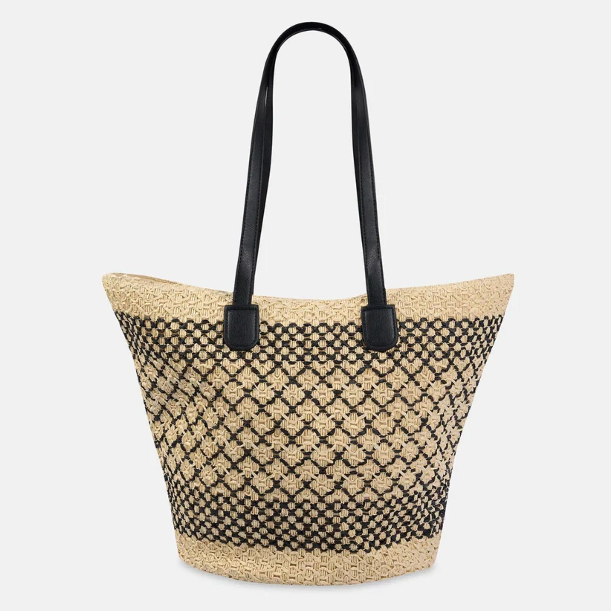 تميزي بإطلالة أنيقة على البحر مع حقيبة الشاطئ القش النسائية ذات النقشة المربعة. تصميم واسع (العرض 52 سم × الارتفاع 32 سم) يجعلها مثالية لحمل المناشف، المستحضرات، والإكسسوارات الصيفية بكل راحة وأناقة. خفيفة وعملية لترافقك في العطلات والإجازات الصيفية.