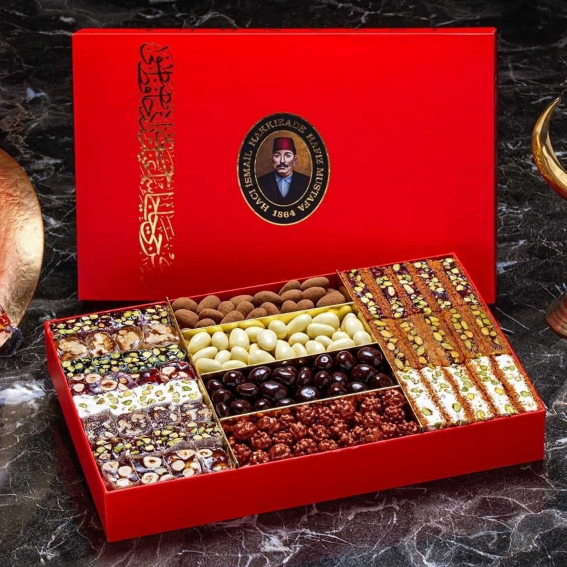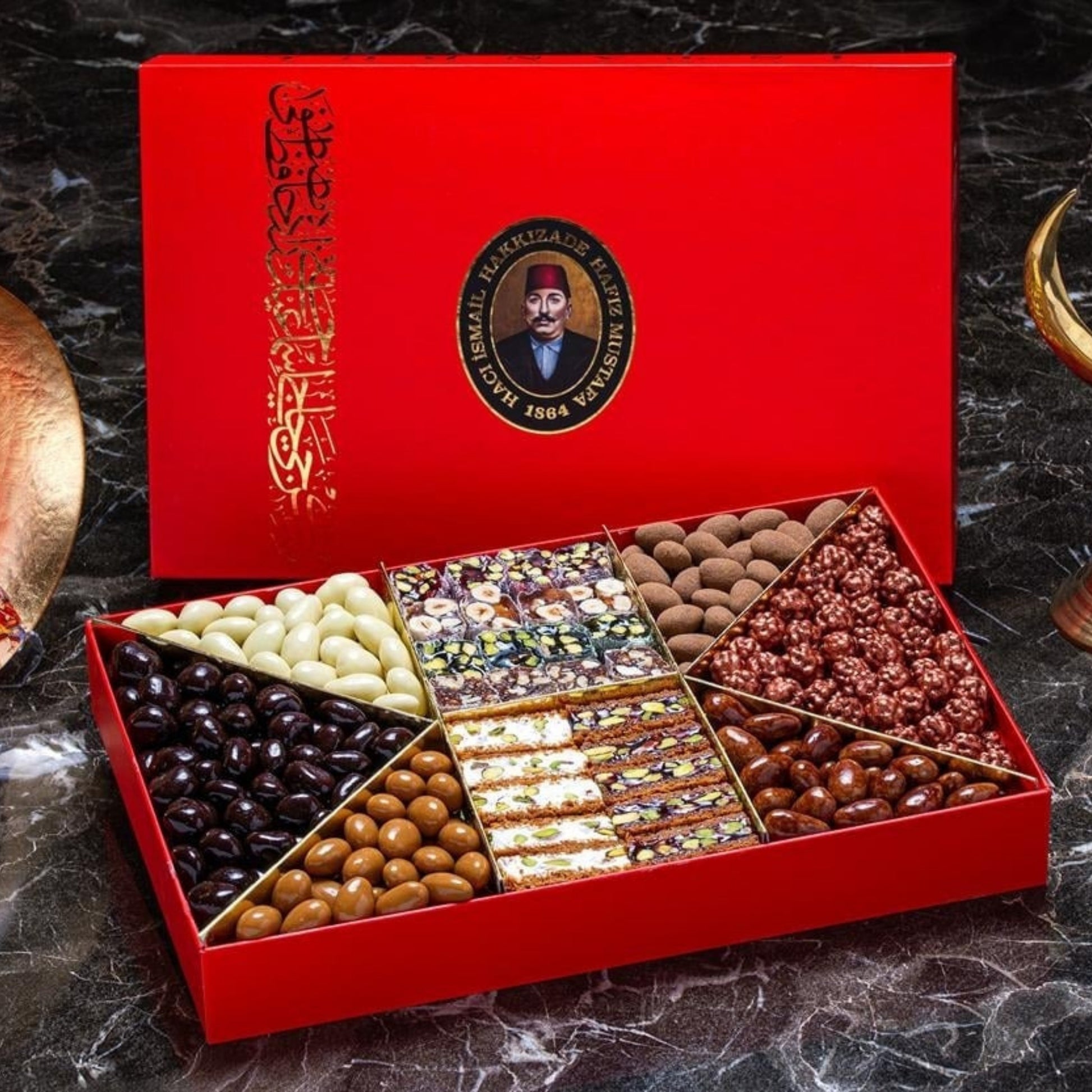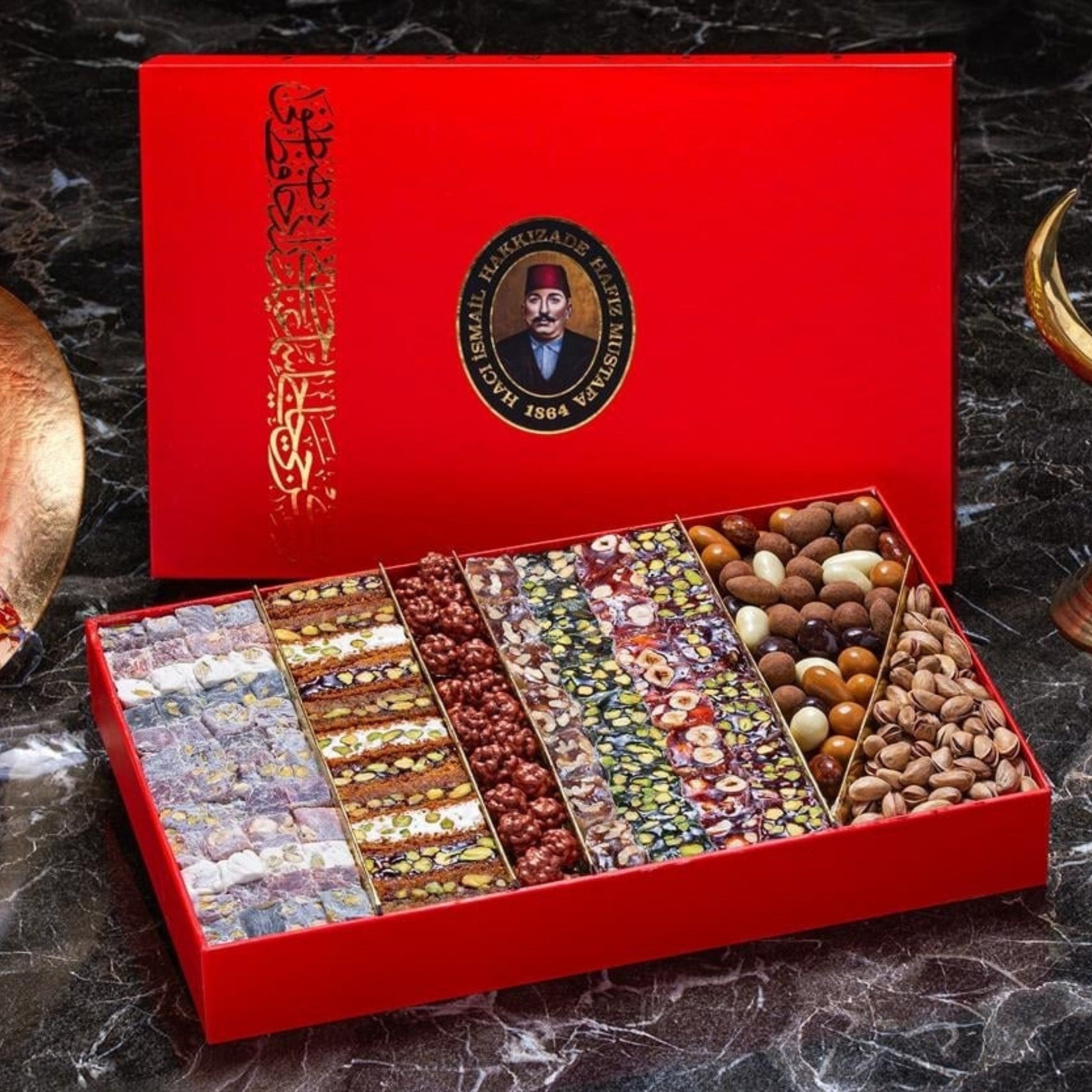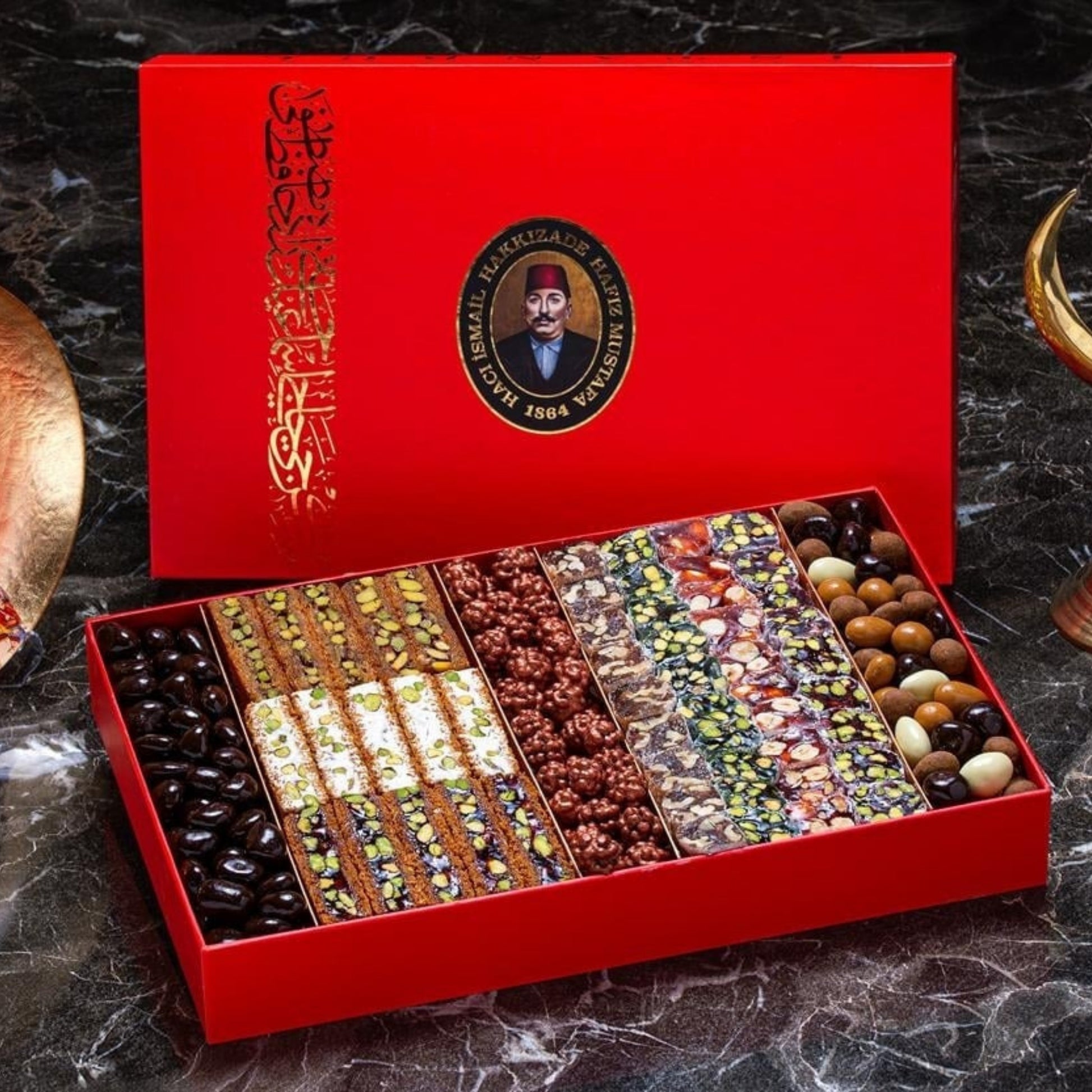 استمتع بتجربة ساحرة من النكهات العثمانية الأصيلة مع حلقوم تركي مشكل من حافظ مصطفى، حيث تجتمع الطراوة الممزوجة بنكهات الفواكه الشهية مع القرمشة المميزة لأصابع القضايف المحشوة بالفستق، وحبات الشوكولاتة الغنية بنكهات القرفة، الفواكه، وحبوب البن. علبة واحدة تجمع بين الألوان المبهجة والنكهات الفاخرة لتمنحك لحظات من السعادة والبهجة مع كل قطعة.