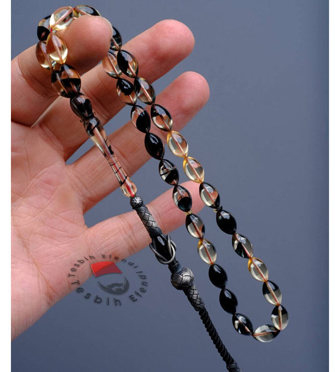 سبحة من العنبر الناري باللون المدخن والشفاف
