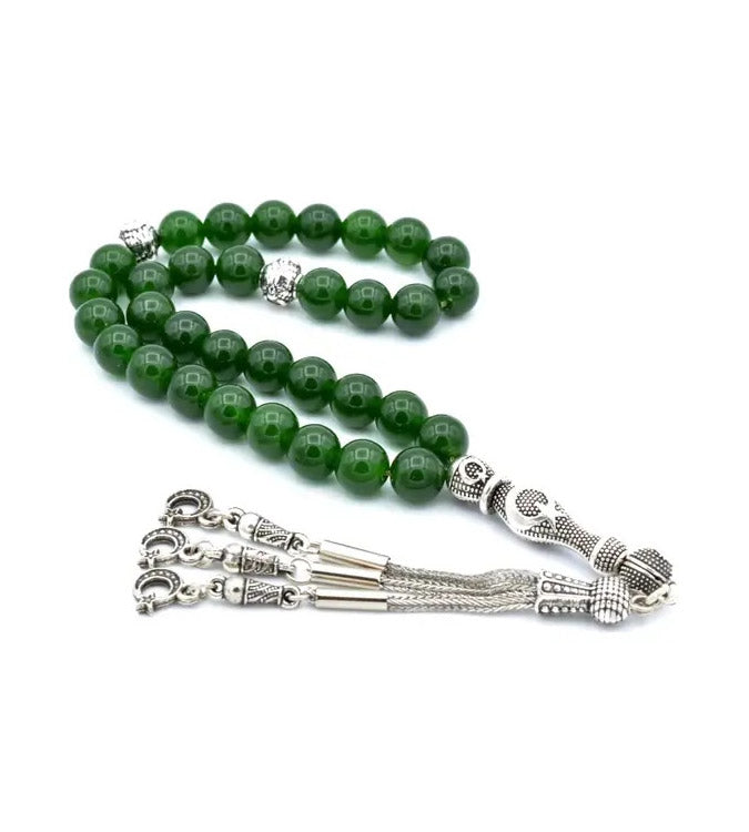 مصنوعة من حجر اليشم.لمعان لا يعرف الصدأ ابداً.حجم الحبوب: 8 ملم.الطول الإجمالي: 28 سم.مدة التجهيز 1-4 أيام عمل.مدة الشحن 2-4 أيام عمل.