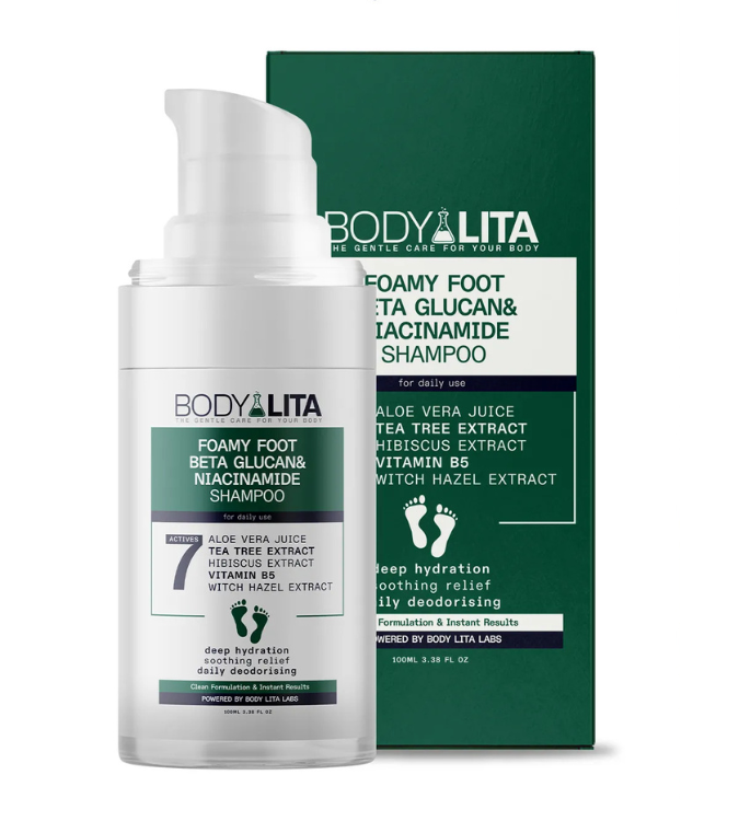 احصل على انتعاش يومي لقدميك مع شامبو رغوي للقدم من Body Lita، المصمم خصيصًا للقضاء على روائح القدم وتوفير ترطيب عميق وراحة فورية. يحتوي على 7 مكونات نشطة، بما في ذلك مستخلص شجرة الشاي، جل الصبار، فيتامين B5، وخلاصة الكركديه، مما يساعد على تنقية البشرة وترطيبها بعمق.