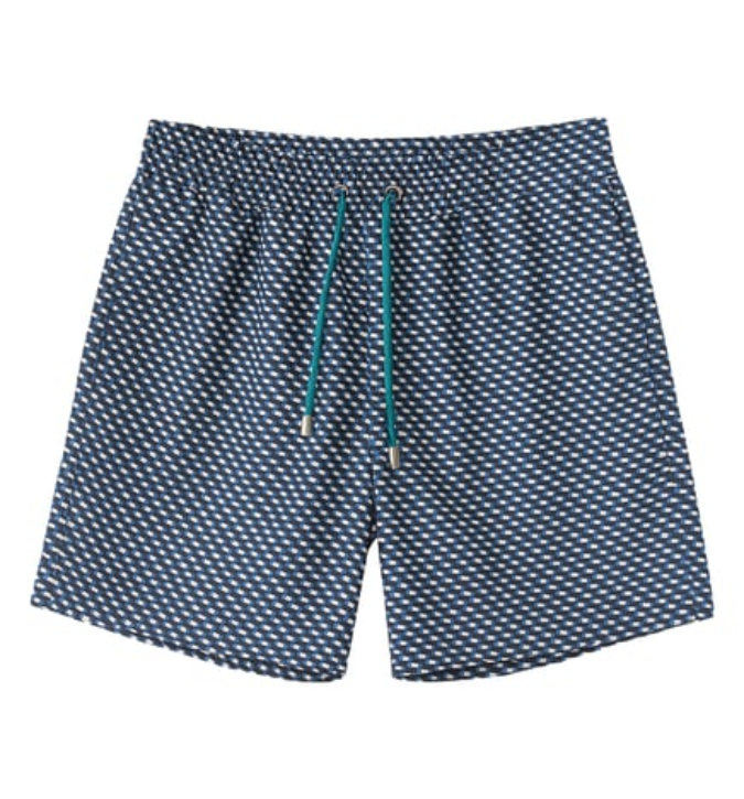 شورت سباحة رجالي بطبعة هندسية – كحلي | قماش سريع الجفاف وراحة مثالية