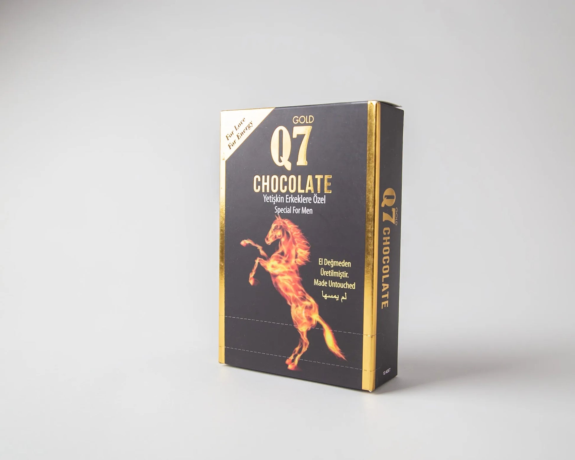 شوكولاتة Q7 الذهبية هي الخيار الأمثل لدعم الرغبة الجنسية وتقوية الانتصاب بفضل تركيبتها العشبية الغنية بالجنسنغ والإبيميديوم والزنجبيل.