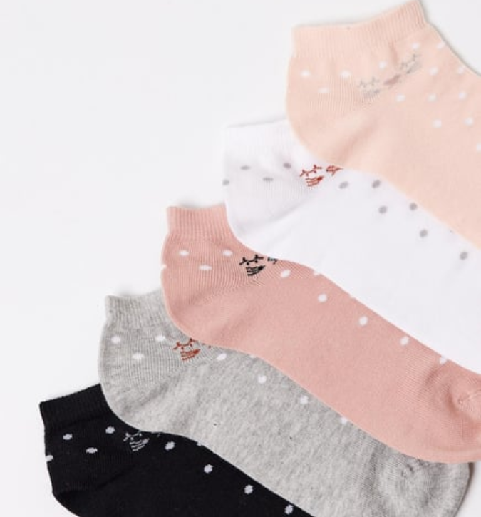 تميّزي بإطلالة ناعمة وأنيقة مع طقم الجوارب النسائية المنقطة المكوّن من 5 أزواج بألوان كلاسيكية ورقيقة مثل الأسود، الرمادي، الوردي، الأبيض، والبيج.